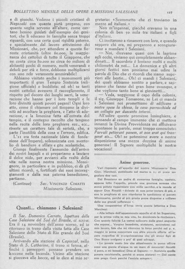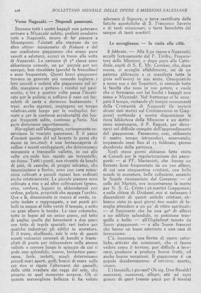 ※編集部注:日本からのチマッティ神父の最初の手紙に先立ち、3月号に掲載予定で、すでに先月分として準備されていた旅の記録をここに補足する。