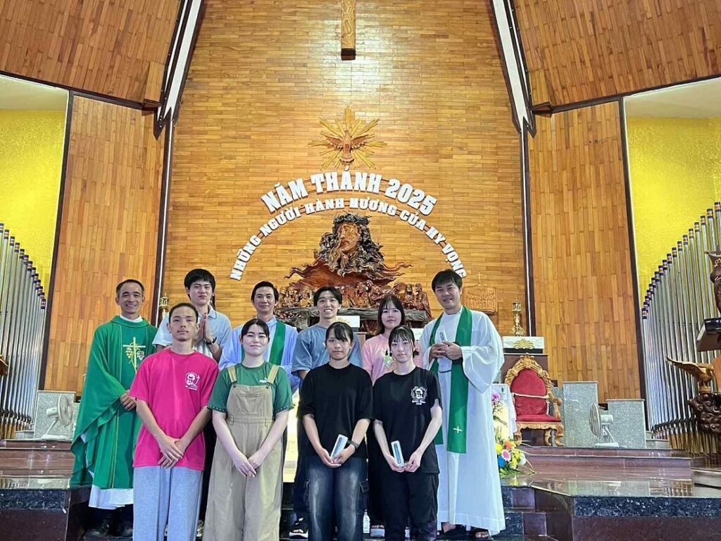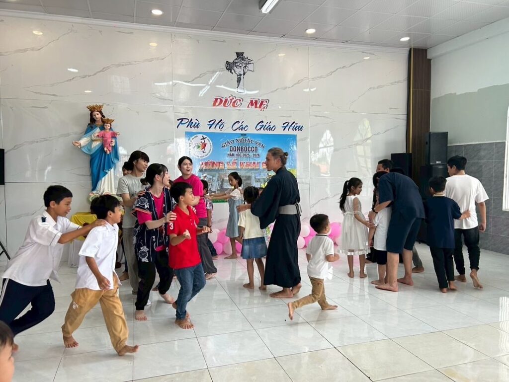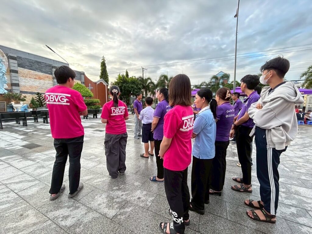 その後、教会に併設されている小学校の入学式に参加しました。式の中では、小学生によるダンスや歌の発表があり、私たちDBVGもダンスや日本のゲームを披露しました。その後、小学生と保護者の方々に照り焼きチキン丼をふるまいました。午後からは、ベトナムで有名な巡礼地であるDIEP神父様の教会でミサに与りました。