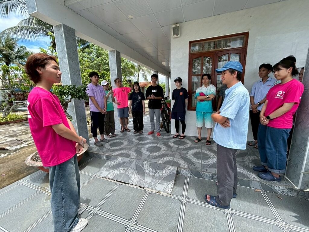 本日も、午前中から作業を行いました。主に壁のペンキ塗りをしました。現地の子どもたちも多く手伝ってくれました。午後も、継続して作業に集中しました。お昼頃には、メンバーの一人が先に帰国したため、全員でお見送りしました。また、現地の学生から聖年に合わせてベトナムで作られた曲の振り付けを教えてもらいました。夕方からは教会でミサに与り、日本人メンバーで拝領の歌として「キリストの平和」を歌いました。その後、現地の方々と共にロザリオの祈りを唱えました。