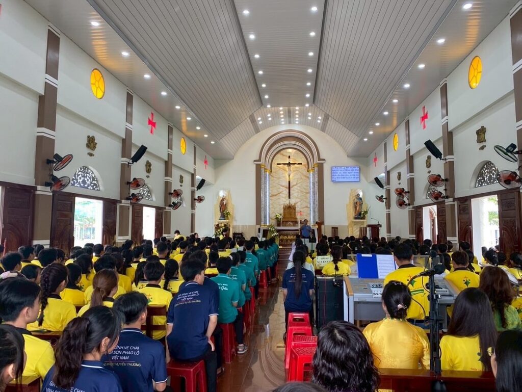 本日は、タックバン教会で行われた青年の集いに参加し、別の教区も含めた300人以上の子どもたちと交流を深めました。互いに出し物を披露したり、一緒にミサをあげたりしました。