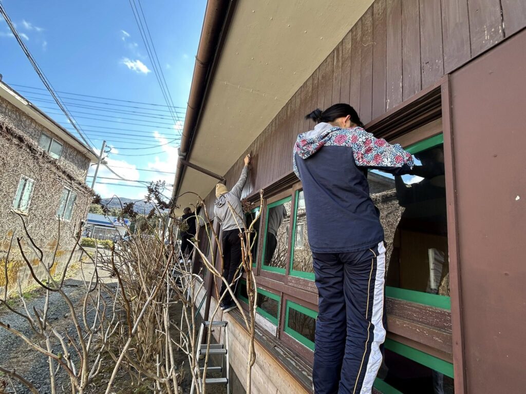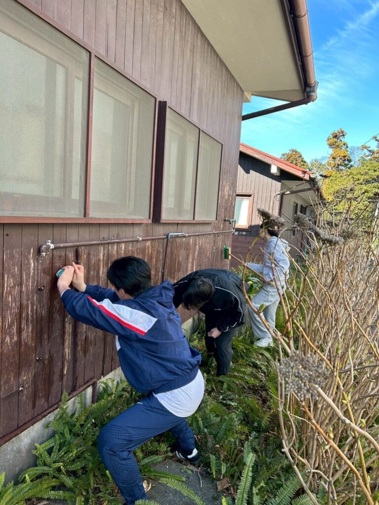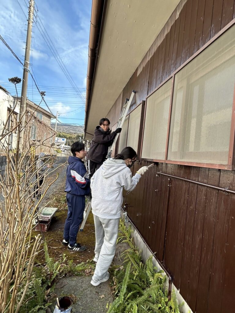 大島教会の外壁のペンキ塗りを行いました。教会の管理人さんの指導のもと、メンバー一丸となって作業に取り組みました。